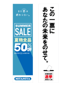 お店の広告や交通安全・啓発、地元スポーツ選手・生徒の表彰まで、個人・企業・自治体問わず幅広く利用されている「懸垂幕」。 主に長期間屋外へ大型サイズで作成・設置されるものであり、のぼり旗や小型の幕類に比べると制作コストは高 […]