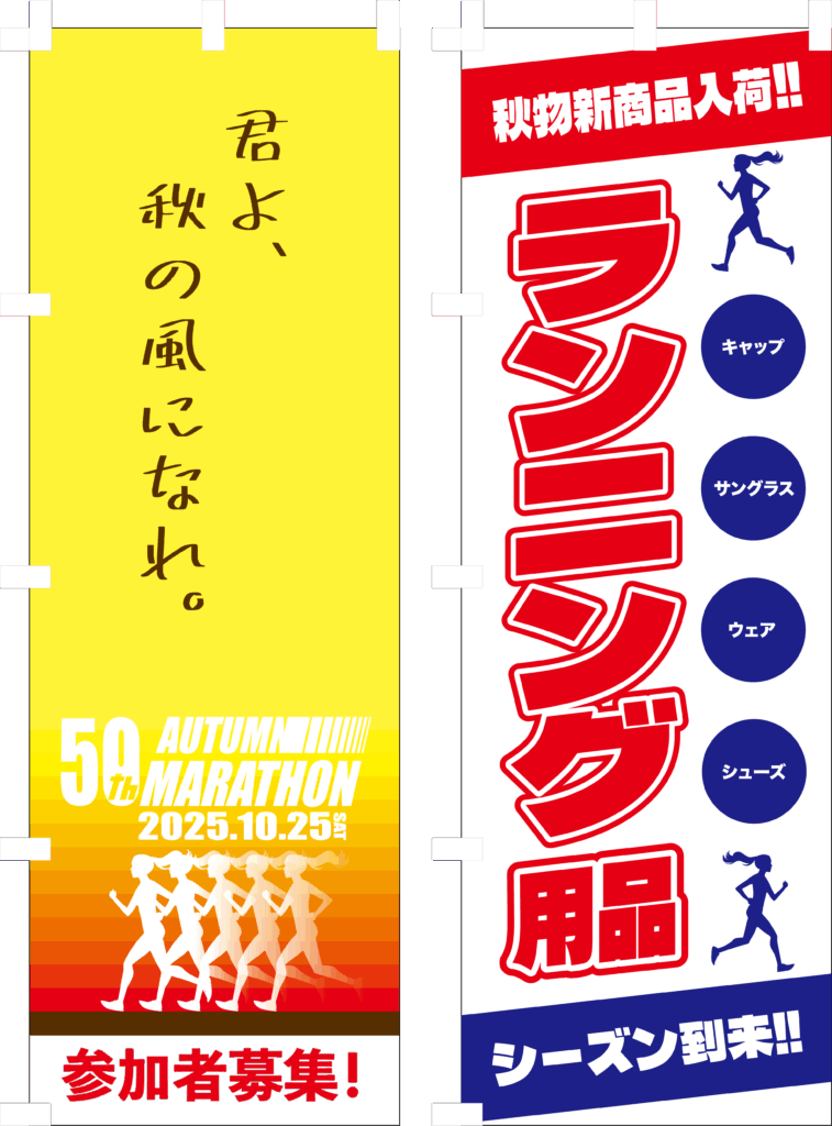 秋の売り場を彩る、スポーツのぼり旗の活用