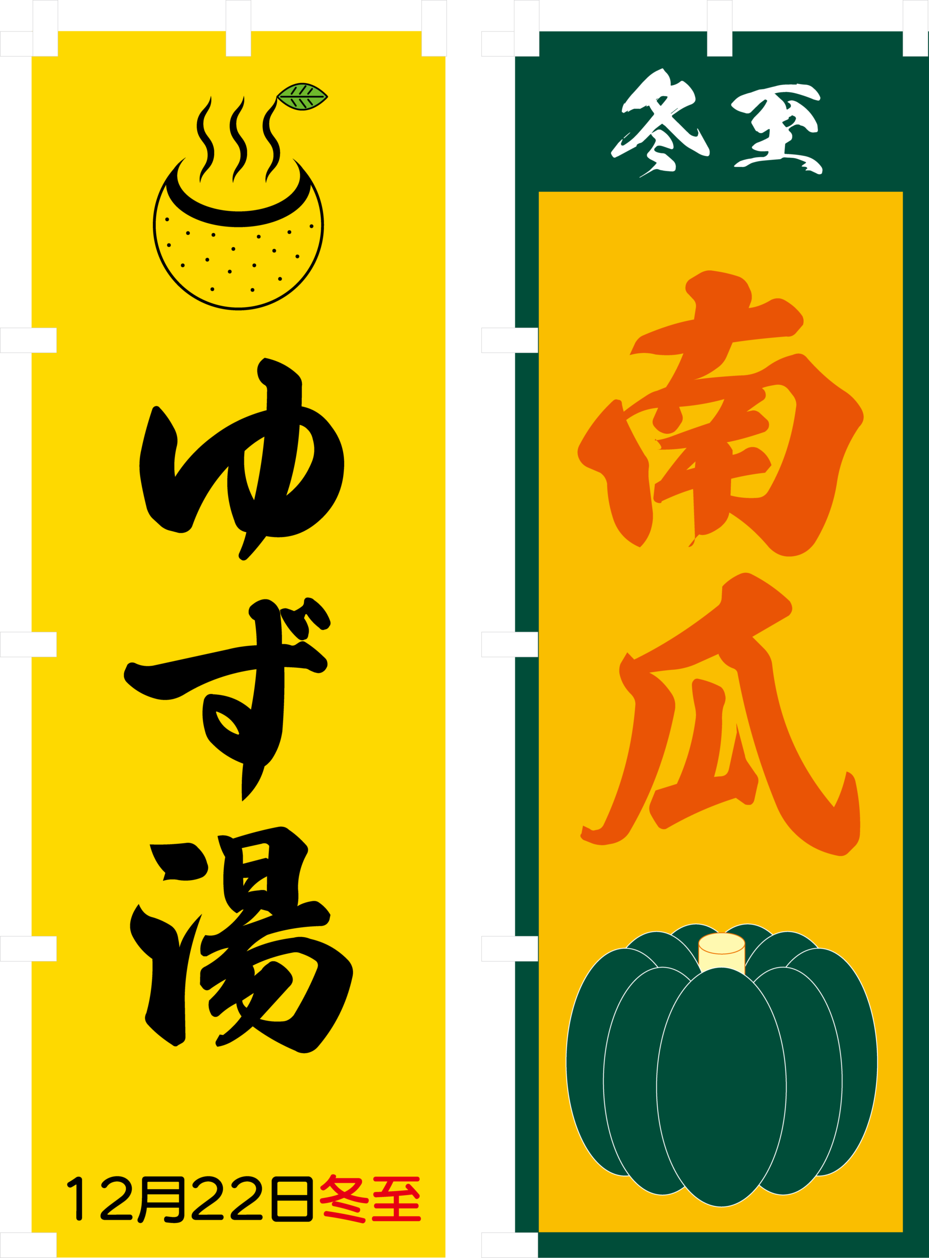 冬至の「ゆず湯」も、「かぼちゃ」も、のぼり旗でひと目に。