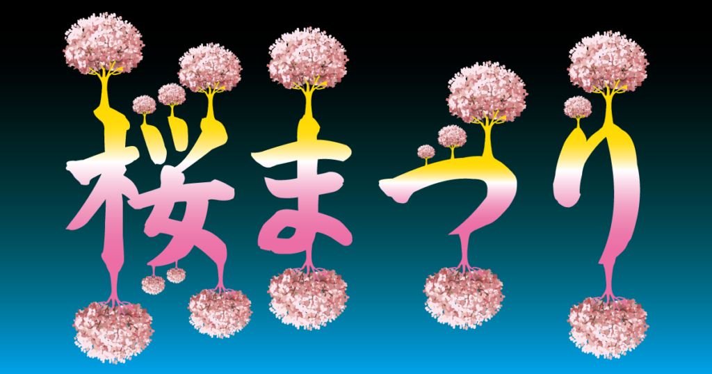 「桜まつり」「お花見」「夜桜ライトアップ」といった言葉が並び、会場ににぎわいが生まれます。
