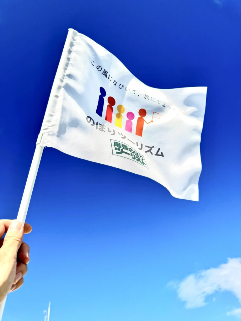 素材は丈夫で風になびきやすいポンジ生地を使用し、フルカラー印刷できれいな仕上がりです。